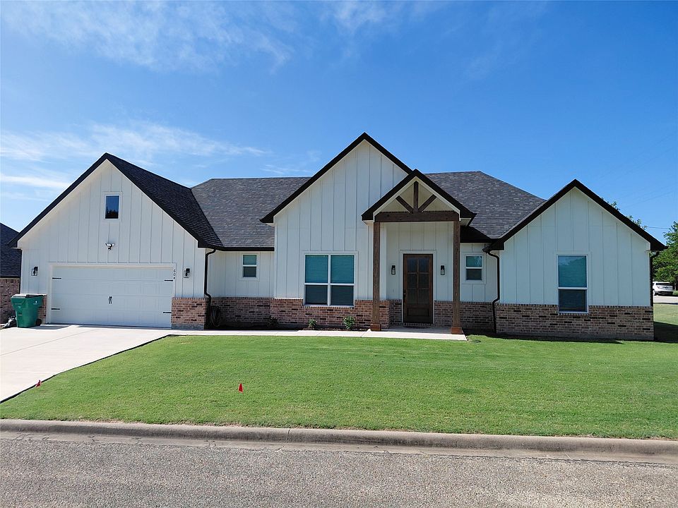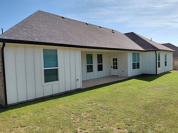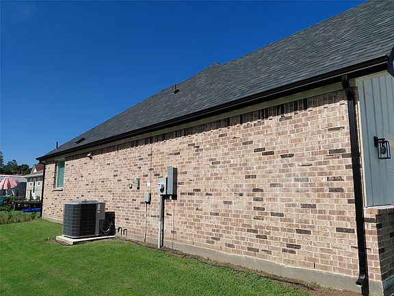 This residence, located on a corner lot, boasts an open floor plan. The kitchen provides a view of the living room, which is adorned with custom details. It features a master suite that includes a spacious closet and a luxurious bathroom, perfect for relaxation. The house is ideally situated near schools, parks, and the downtown area of Muenster. The property is characterized by high ceilings, keyless entry doors, and a fireplace with adjustable flame colors to enhance the atmosphere. Furthermore, there is a vent hood installed above the stove, along with a food pantry room that exceeds 5x8 feet, designated for the storage of food and beverages, as well as additional space behind the door for a compact freezer. This home is protected by a transfer warranty for the Mechanical, Electrical & Plumbing Distribution System, which is valid until Summer 2026, in addition to a Major Structural Defect Warranty that is effective until Summer 2034.