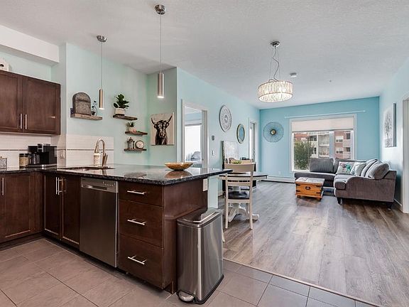 If you are looking for a home that is Furnished, Decorated, has Kitchenware, Underground Parking, and is Ready for a Quick Possession, then this is going to be perfect for you! This Lovely 2 Bedroom, 2 Bath, plus a Den Condo has been beautifully painted and decorated and features 9-foot Ceilings, Oversized Windows for lots of natural light, includes newer Luxury Vinyl Plank Flooring, Blinds, California closets and Phantom Retractable Screens. The Kitchen is a Chef's Dream featuring modern Cabinetry, Stainless Steel Appliances, Granite Countertops, and Large Island with lots of space for extra seating. The Living Room has a Large Window and opens to the West Facing Balcony. The Primary Bedroom has a fabulous walk thru closet with California Closet System for lots of storage, and has the 3 pc Ensuite with a large Shower Stall. Bedroom 2 is also quite spacious with a large closet. There is also a Large Den perfect for an Office or for Extra Storage with built in Cabinets, and a 4 Pc Bathroom. The TITLED UNDERGROUND PARKING Stall has a storage cage for your extra items. This great Condo is close to Restaurants, Transportation, Walking Trail around East Lake, is steps from Genesis Place, and has easy access to QE2. Come and view it today and let's make it yours.