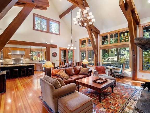 With easy access to trails, and moments from Northstar Ski Resort, this home blends elegant mountain design with convenience and comfort. Classic materials including plank fir flooring, granite countertops, and exposed timber trusses create a timeless Tahoe atmosphere.