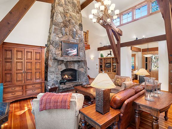 Experience the best of indoor/outdoor living in this stunning lodge-style rental home, tucked away on a quiet cul-de-sac in the exclusive Lahontan Golf & Country Club. Backing to open forest with lush gardens and a private backyard, this residence offers both grandeur and warmth ideal for entertaining or relaxing by the fire.