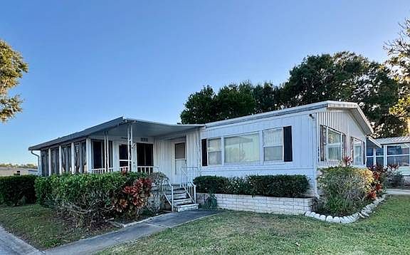 This unfurnished 2-bedroom, 2-bathroom home is located directly across from Lake Gibson on a desirable corner lot in the popular 55+ community of Fountainview Estates. It features a brand-new roof (2025), a utility shed, and a spacious 21' x 11' garage shed. CASH SALE ONLY. LOT RENT: $619/month. In addition to being across from the lake, this home is also across from the clubhouse, swimming pool, boat ramp, boat dock, and shuffleboard courts. The home is being sold AS-IS, and the price has been adjusted to accommodate repairs needed for several water-damaged walls and ceiling panels. A generous 19' x 9' Florida room runs along the lake-facing side of the home, providing a place to enjoy serene lake views. The washer and dryer are located inside the home for added convenience. All appliances and window treatments are included in the sale. This is a pet-friendly, 55+ community allowing two pets at 25lb max. Enjoy bass fishing, water skiing, and viewing beautiful sunsets from the clubhouse/dock. Utilities not included in lot rent. Owners pay electric, water, cable, and $25/year HOA. Heated Pool, Shuffleboard, Clubhouse with a kitchen, pool table, fireplace, library, puzzle box, and bingo. Great amenities with an affordable rent. The park is approximately one hour from beaches to the West, and Legoland and Disney World to the East. Fountainview Estates is situated near an abundance of shopping, restaurants, and medical services...most accessible by golf cart! Good news given today's gas prices. PARK APPROVAL IS REQUIRED with proof of income at least 3 times the monthly rent. MUST BE AT LEAST 55 years old to apply. Application fee is $50 cash per person (Canadian $85/ea.) Primary resident must be at least 55 y/o and 2nd must be at least 40 y/o. Must HAVE a credit history with no collections. Background checks. THIS IS A MOBILE HOME IN A PARK ON LEASED LAND, NOT REAL ESTATE. YOU MUST CONTACT THE MOBILE HOME LISTING AGENT FOR SHOWINGS. All listing information is deemed reliable but not guaranteed and should be independently verified through personal inspection by appropriate professionals. Our company does not and cannot guarantee or warrant the accuracy of this information or the condition of this property. Measurements are approximate. The buyer assumes full responsibility for obtaining all current rates of lot rent, fees, and pass-on costs. Additionally, the buyer is responsible for obtaining all rules, regulations, pet policies, etc., associated with the community, park, or home from the community/park manager. Our company is not responsible for quoting said fees or policies. Sales price doesn't include tax, dealer, or admin fee.
