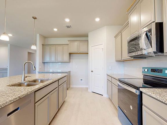 Welcome to the Parker floorplan at Country Meadows in Thorndale, Texas. With approximately 2,442 sq. ft., this home offers 3–4 bedrooms, 3 bathrooms, and a 3-car garage, providing the ideal mix of space and flexibility. Upon entry, you’ll find a versatile secondary bedroom with a walk-in closet that can double as a study, along with a convenient storage room and guest bath. The hallway opens into an open concept living area where the great room, dining space, and kitchen blend seamlessly. The kitchen is designed for both style and function, featuring flat-panel maple cabinetry, a decorative tile backsplash, stainless-steel appliances, ample storage, and a spacious island with granite counters. From the dining room, step out to the covered patio, perfect for relaxing outdoors. The primary suite is a private retreat with a generous bedroom, with a walk-in shower that can be opted for a tub and shower, and a walk-in closet offering direct access to the laundry room and garage. Two additional bedrooms share a full bath, ensuring comfort for family or guests. Every D.R. Horton home includes smart home technology, giving you security and energy control at your fingertips. Discover the perfect balance of comfort, convenience, and design. Contact us today to make the Parker floorplan at Country Meadows your new home.