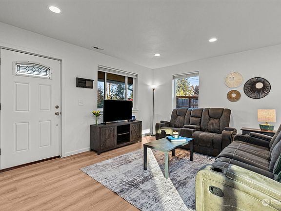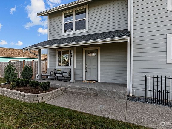 This stunning, like-new 4-bedroom home, just a short stroll from downtown Orting, offers breathtaking views of Mt. Rainier as your daily backdrop. Step inside and be captivated by the spacious, open-concept layout, complete with high-end finishes. Whether you're hosting gatherings, entertaining friends, or enjoying a quiet evening at home, this space has it all.The spacious primary suite features dual closets and a beautifully designed ensuite bath, perfect for unwinding in style. Outside, enjoy a charming covered front porch, lush privacy landscaping, and a fully fenced yard—ideal for relaxation or outdoor activities.Located conveniently close to schools, parks, restaurants, and shopping, this home offers both comfort and convenience.