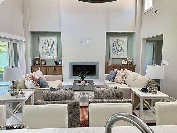 High-end, contemporary elements greet you as you enter the Altair plan; a modern reinvention of the historic flat top. The open concept design with distinctive architectural elements features a spacious great room with electric fireplace and 16 ft ceilings, gourmet kitchen with large center island, ample cabinet storage, solid surface counters, custom backsplash and walk in pantry. Enjoy entertaining in the casual dining room or the covered rear terrace overlooking the back yard. A separate bedroom wing provides for added privacy and flexibility. The luxurious primary suite boasts volume ceilings and private bath with semi-custom tile shower, skylight, and walk in closet. The comfortable secondary bedrooms provide ample space and closet storage and provide easy access to the hall bath. Distinctive features include LVT flooring in main living areas, tile flooring in full baths, solid surface counter tops, stainless steel appliances with upgraded range hood and microwave drawer, built-in cabinetry at family room, craftsman trim throughout, Delta plumbing fixtures, and designer lighting. Let this home's dynamic twist on history inspire you! Water Oak is a sound front community of 70 homesites featuring a manicured entry, multiple green spaces, and a community pier with kayak launch. The central location offers easy access to the beach, several miles of the Bay Drive multi-use path, disc golf, restaurants, and beach shopping. Don't miss this opportunity. Schedule your showing TODAY! Home is staged and furnishings and decor do not convey. Buyer to pay one time capital contribution fee of $500.00 at closing. $150 transfer fee to Seaside Management to be paid by the buyer. Tax accessed value based on land only.