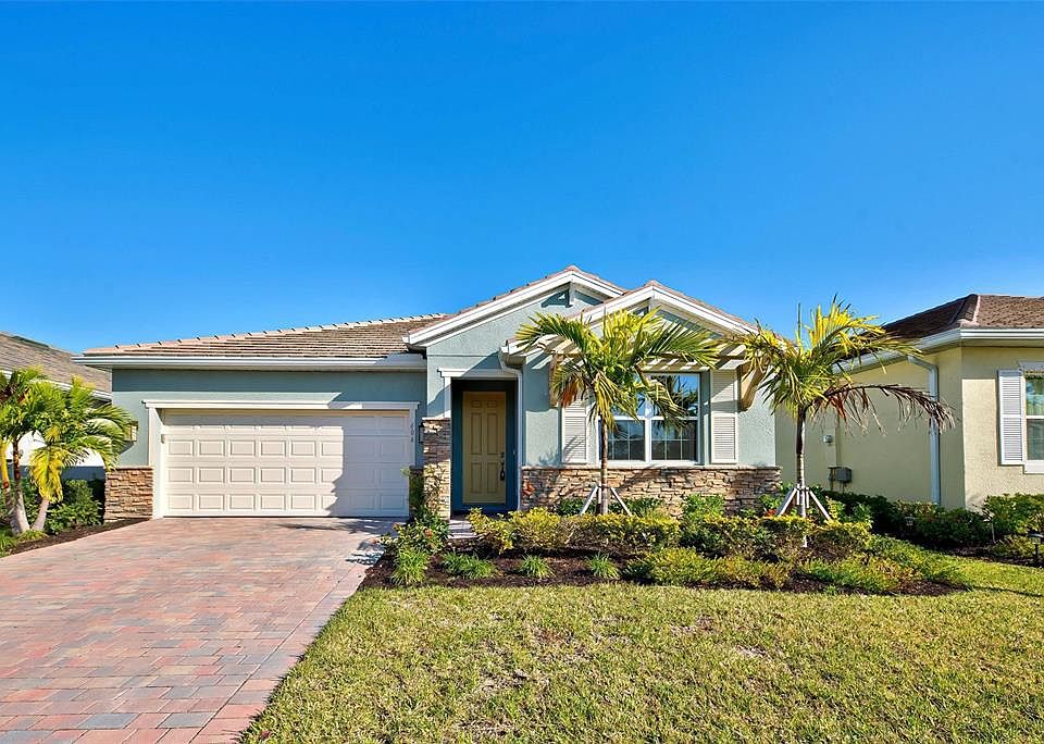 . Turnkey furnished with new furnishings that have only been used for 5 months. This beautiful Clifton model 3 br 2 ba in the newly established gated community of Palencia, is only one year old and has only been lived in for 5 months. This well designed home provides a light, neutral, coastal feel. The kitchen opens up to a spacious great room and dining area overlooking the lanai. Enjoy upgraded features including quartz counter tops in the kitchen and baths, plus soft-close cabinets with roll out shelves. Also experience a full size laundry room with new washer and dryer along with a two car garage that has been coated with a Pebble Tech coating.The home is also protected with full house hurricane shutters, security system, and other features which help with the ins. costs. The back yard is large enough to put in a pool in the future. You also will enjoy the new clubhouse with a large pool, fitness center, and bocce ball courts. A fenced in dog park is also provided for your pets. The association dues are very low and there are no CDD fees. All your yard work is done for you and you are ready to relax and enjoy your new home. Everything you need is close by and the convenience of traveling to Venice is only a 15 minute drive. The new Venice Regional Hospital is within 10 minutes. The new hot tub is available for purchase on a separate contract at half the cost. Come and see your new home today. Owner is motivated! Just reduced to $495,000.
