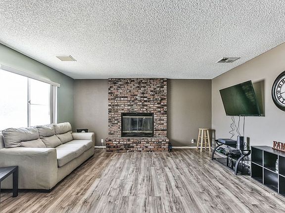 Cul-de-sac cutie!! This 3 bedroom, 2 bath sits on a big tucked in lot. Good size living room with laminate wood floors and brick fireplace. Tile floors and counters in kitchen. Nice size master bedroom with walk in closet. Outside has screened in patio, two sheds and plenty of parking space including a large covered parking structure.