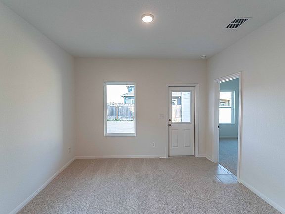The Elm floor plan presents an open, two-story layout complete with three bedrooms, two and a half bathrooms, and a two-car garage.. This home greets you with a spacious front porch in which you can relax with your morning coffee. Upon entering the home, you are met with stunning vinyl flooring and a foyer that leads to the combined family room and kitchen. On the way, you will find the convenient downstairs powder room equipped with a white pedestal sink and decorative mirror. The formal dining room is ideal for hosting guests, and the integrated kitchen opens up to the family room, so no one will have to miss out on a conversation! The large kitchen features plenty of counter space, granite countertops with an under-mount stainless steel sink and a ceramic tile backsplash, a kitchen island, flat-panel birch cabinets with 42" uppers, designer light fixtures, and a pantry. If you or the kids like to spend time outdoors, opt to include a covered patio! Completing the first floor is your expansive master suite including a divine master bathroom showcasing cultured marble countertops, LED down lighting, cabinetry that matches the kitchen, a super shower, and a massive walk-in closet. Right up the stairs resides the game room - a place the kids can call their own! Also upstairs is the walk-in utility room, a secondary bathroom, and two bedrooms with walk-in closets. This floor plan is uniquely designed for any lifestyle, maximizing every square foot. The vast amount of included f