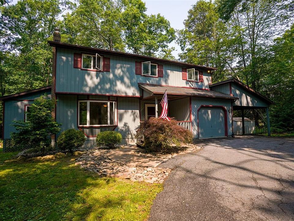 Back on the market! Price reduction! Looking for a colonial in PVSD? Come see 604 Maplewood Ct. Situated on a beautiful, wooded, corner lot in a neighborhood with no HOA fees. Just minutes from I-80, Rt. 33, Tannersville Outlets, and other Poconos attractions. The 1st floor features new laminate flooring throughout with a nice sized eat-in kitchen, sunroom, family room, half bath and a mudroom/laundry. Access the rear deck with a large backyard through either of two sliding glass doors. Going upstairs one will find new carpeting on the stairs and hallway on the 2nd floor. The large master bedroom has a generous sized office/work area/child's nursery attached along with a master bathroom. Two other bedrooms along with a full bath round out the 2nd floor. This home features a one car attached garage along with a 15X25 ft. carport and includes a one year warranty from American Home Shield.