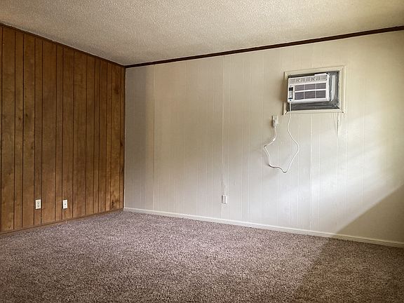 1 Bed, 1 bath, 640 sq ft apartment. Window unit AC cooling, baseboard heaters, electric stove, tile & carpet flooring, hall closet, two walk-in closets in the bedroom. Shower/tub combo & toilet room separate from vanity. Ceiling fan in the bedroom. Fridge provided. No on-site laundry available. This unit has one parking space. $300 security deposit. Tenant pays water & electric.