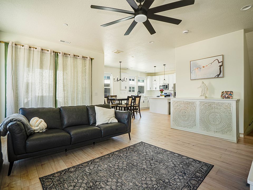 What a great location! This beautiful home boasts of a prime location and a welcoming atmosphere that you'll love coming home to everyday! Super close to Station Park, Harmons, restaurants, shopping, concerts, etc.! This home showcases exceptional design and modern finishes. Don't need to equip this home with the typical expenses that come from buying a new construction. This home already comes equipped with nice window shades, fans, appliances, etc. Walk out to your deck for relaxation, entertaining guests or just enjoy the quite evenings with loved ones. A lot of natural light floods the space with big windows in every room. Additionally, Ivy Acres Park is being built very close and it'll be a great plus to this location! It'll have playgrounds, log obstacle course, slides, climbing nets, and more! Welcome to your new home! (Information deemed reliable and provided as a courtesy. Buyer and/or buyer's agent advised to verify all information provided including city project of Ivy Acres Park)