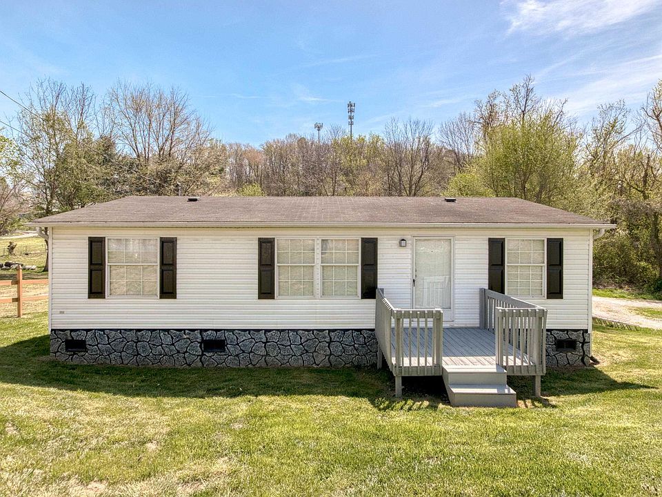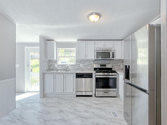 This beautiful, newly-renovated doublewide sits on two lots and is conveniently located close to town & amenities. This home boasts a completely renovated interior, including but not limited to new flooring throughout, a beautiful updated kitchen with stainless steel appliances, and two full bathrooms with multiple new fixtures. Outside of the home there is a shed that is perfect for storage, and a nice sized yard with a gravel driveway.