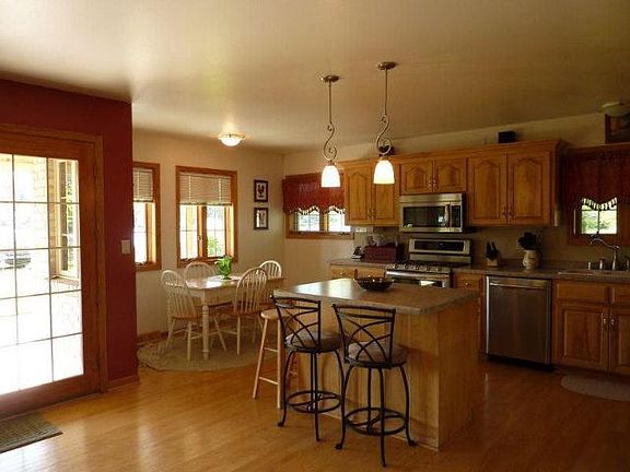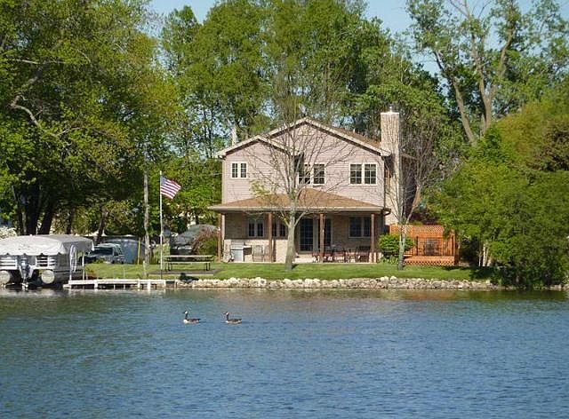 This immaculate lake house on traffic-free private road is waiting for you! 4 generous bedrooms and 3 full bathrooms - there is plenty of room for everyone. Master suite offers lake views, whirlpool and large closet. Beautiful hardwood floors in kitchen, family room, dining room and foyer. Cathedral ceilings, skylight, 6-panel doors, woodburning stove and main floor laundry. Level lot, 76 feet of frontage on 1100 acre lake known for fishing, waterskiing, kayaking, snowmobiling. 3-car garage has epoxy floor
