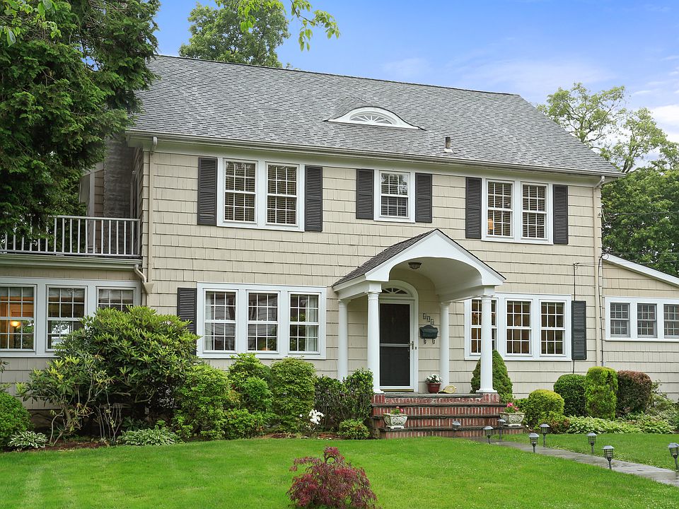 Traditional sun-filled Colonial with tremendous charm and curb appeal in Shore Acres neighborhood. A true center hall with formal living room/fireplace with French doors leading to a sunroom, and a formal dining room for those special family gatherings. The sunny, spacious 300 sq ft dine-in-kitchen with skylights, stainless steel, granite and adjoining family room are truly the heart of the home. A mudroom, office/5th bedroom and full bath complete the 1st level. The first level has a nice open flow for entertaining. The second floor has a light and airy master bedroom with new bath and door to a small deck, 3 bedrooms and a renovated hall bath. Full finished basement/storage with laundry room. Sliding doors from family room lead to a spacious two-tiered, newly painted deck with a landscaped, flat, private 1/4 acre property. Great space for outdoor leisure time. A short stroll to the Shore Acres Beach and pool for a swim or to enjoy the views of Mamaroneck Harbor and Long Island Sound.