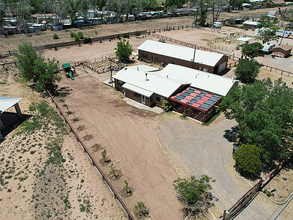 Discover this incredible one-acre Los Ranchos estate! Two homes, each with full kitchens and spacious living areas, offer endless possibilities. Enjoy tile flooring, a three-car garage/workshop, and a playground. Recent upgrades include stainless steel appliances and new fruit trees, and a greenhouse. An irrigation well keeps the garden thriving, ready for your harvest. This is a must-see property in a highly sought-after location!''
