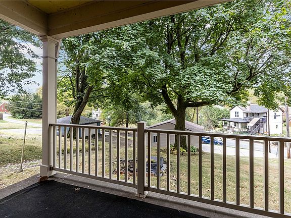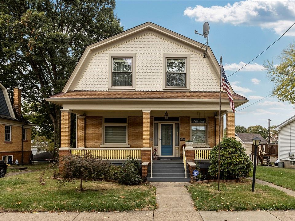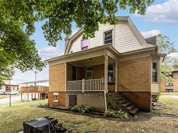 Spacious, well-built brick 3-bedroom home, extra room off the primary bedroom, Original unpainted woodwork with pocket doors, stain glass windows. Most of the windows and roof were replaced in their ownership. Boiler was replaced 2019 and Kitchen update 2015; both of the bathrooms were updated 2025. 2 covered porches, back porch over looks treed yard with firepit and 2 car detached garage with cement driveway off Deitrick Lane