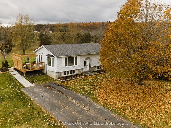 Welcome to this charming and thoughtfully updated, raised bungalow nestled in the peaceful countryside of Trent Hills. Located just a short drive to Campbellford, Warkworth, and the Trent River, this home combines rural charm with everyday convenience-perfect for those seeking both comfort and tranquility. Step into the bright foyer and ascend to the main floor, where a sun-filled living room welcomes you with a large bay window and a picture window. The updated, eat-in kitchen features butcher block-style countertops, a tasteful backsplash, and a large window over the sink offering a lovely backyard view. A walk-out from the kitchen leads to the deck, ideal for morning coffee or evening barbecues. The main floor boasts three bedrooms, including a spacious primary bedroom with a double closet and an updated 4-piece ensuite complete with his-and-her sinks. An updated, main 4-piece bathroom and a convenient laundry room, with a walk-out to the backyard, complete this level. The fully finished basement offers excellent additional living space, featuring above-grade windows that fill the area with natural light. There are two additional bedrooms, a generous rec room, a cozy play area, and a storage room offering versatility for family needs, hobbies, or guests. Set on approximately half an acre with mature trees, this property provides plenty of space to enjoy the outdoors and take in the quiet, country setting.