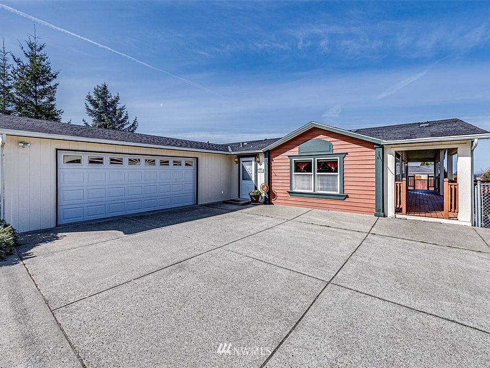 GORGEOUS 2003 HOME WITH WATER & MOUNTAIN VIEWS! MANUFACTURED HOME FEELS JUST LIKE SITE-BUILT HOME & HAS FENCED BACK YARD! Impeccably-maintained home where you OWN the lot with open floorplan. EZ-care yard & HUGE deck is perfect for sun & BBQs! Quiet street of nice homes above Sequim within walking distance of restaurants & shops. MB Walk-in closet is XTRA-LARGE and LARGE chef-style kitchen. TURNKEY. NO HOA-NO CC&Rs. Gorgeous concrete slab under house! Mature fruit trees & deer-proof raised garden.