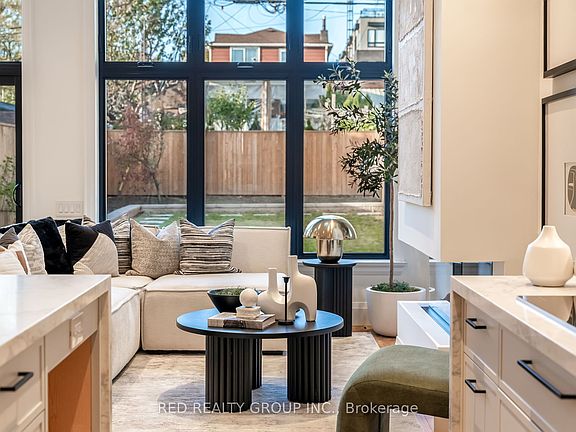 Welcome to 604 Ridelle Ave - A Contemporary Masterpiece in Briar Hill-Belgravia This newly built, custom 3-storey home blends architectural excellence with modern sustainability. Designed with precision and purpose, it offers a seamless balance of sophistication, comfort, and functionality. Step inside to soaring 11-ft ceilings, floor-to-ceiling Dundas windows, and a triple-point locking front door for style and security. The open-concept living, dining, and kitchen areas flow beautifully for everyday life or elegant entertaining. The designer kitchen is a true showpiece - featuring an 8-ft Quartz waterfall island, solid slab backsplash, and premium KitchenAid appliances. Union lighting, sleek hardware, and custom millwork add warmth and detail throughout. Enjoy two skylights and an electric fireplace with fan and heat output, adding ambiance and efficiency. The primary suite offers a private balcony, walk-in closet, and a spa-inspired 5-piece ensuite with heated floors, soaking tub, and rain shower. Four additional bedrooms and a full second-floor laundry room deliver comfort and practicality for modern living. Step outside to a private backyard deck, PVC composite porch with wrought iron railings, professional interlocking, and a lush garden with food-grade soil, pear, blackcurrant, and redcurrant trees - a peaceful, functional retreat. This fully green, all-electric home features a state-of-the-art Mitsubishi heat pump system for year-round comfort, efficiency, and sustainability - with no gas. The legal one-bedroom basement apartment includes soundproofing, fire separation, double " drywall, and insulation - ideal for multi-generational living or rental income. Across from the park and minutes to the Eglinton LRT, Yorkdale Mall, and major highways, this home delivers contemporary construction, timeless comfort, and unbeatable convenience. A home built to last. A lifestyle built to love.