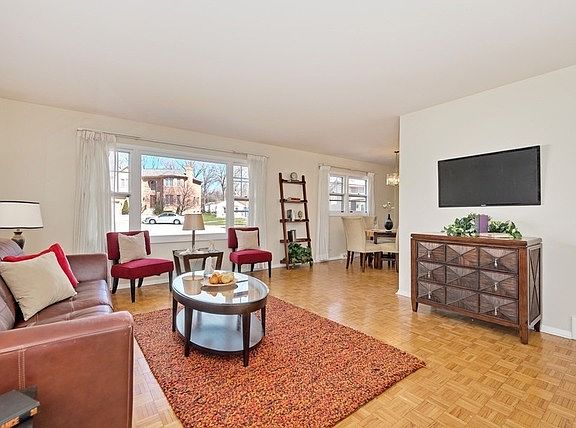 Newly updated, 3 bedroom/ 2 bathroom ranch home on cul-d-sac street in very desirable Glenview location. Top rated, district 34 schools! Large eat-in kitchen with new counter-tops, maple cabinets and new white appliances. Large, sun-drenched living room with lots of windows. Formal dining room. Master suite with ensuite master bath and great closet space. Two more bedrooms and one full bathroom. Full, unfinished, full foot print basement with tall ceilings. Basement is plumbed in and lined for kitchen, has sump pump, laundry and treated cement floor.... ready to be finished. Large two-car detached garage. Home has new roof, new extra large driveway, updated plumbing and electric. Also, large rear yard!