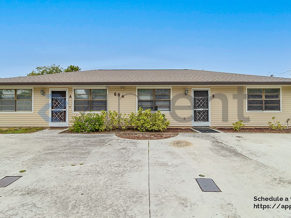 Welcome to 604 Roselyn Avenue, Unit B, located in the charming city of Fort Pierce, FL. This delightful duplex unit offers a blend of comfort and practicality, perfect for those seeking a cozy living space. The exterior presents a welcoming facade with a neatly maintained front yard and ample driveway space for convenient parking. As you step inside, you'll be greeted by a spacious living area featuring wood-style flooring and a ceiling fan, creating a comfortable atmosphere for relaxation or entertaining guests.