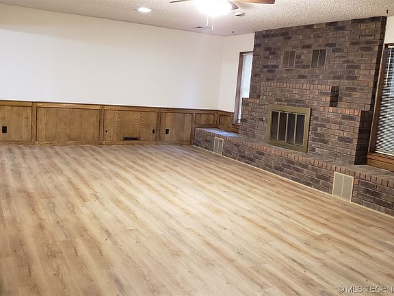 Brick 3 bedroom, 2 bath, 2 car garage home with various improvements in Dewey. New roof and insulated garage door. New flooring in living room, hall, bedrooms & closets. Freshly painted areas, even the closets! Several new & updated fixtures. Lots of storage in the updated kitchen with a handy pantry and many pull outs in the cabinets. Kitchen has a breakfast bar that opens to the dining area. Large living room has cozy glass front wood burning fireplace with blower unit. Family room is off the living room and accesses the back yard. Linen/storage cabinets in both updated baths. Master bath has 2 sinks and custom walk in shower with bench seat. Linen/storage closet and coat closet in hall. Need extra storage space? There are 2 sheds in the fully fenced back yard! Back yard can also be accessed from the garage. Come take a look. Agent interest.