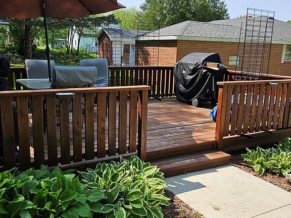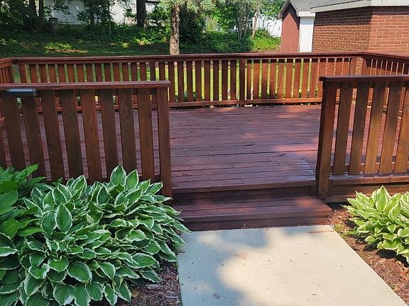 Just in time for the backyard campfires and entertaining! Great home on a large corner lot, featuring a nice stone fire pit, backyard deck and storage shed! Home features main level kitchen, dining, living room and laundry space with toilet. Upper level has 2 bedrooms with the potential of a 3rd bedroom or office space and 3/4 bath. Home has a newer furnace and water heater. All appliances will stay with the new owner!