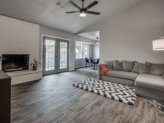 Completely remodeled home in Moore! This home has it ALL! Minutes from Dining, Entertainment, OKC, Norman, and Tinker AFB. Secluded culdesac lot. The inviting large open living area with wood-look tile floors and wood-burning fireplace draws you into the heart of the home. Right off the living room are the dining room and brand new kitchen, including cabinets, granite counters, and stainless steel appliances. The french doors open to huge back yard perfect for entertaining. New, plush carpet in all the bedrooms and both bathrooms have been updated with granite counters and tile surrounds. Call today for your private showing.