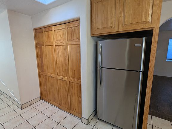 The Salazar house is a 1400 square foot 3 bedroom, or 2 bedrom/1 office, and 2 baths (a full bath and a 3/4 bath) home with natural diamond plaster finish throughout. The kitchen is the hallmark of this home - quite spacious with plenty of custom cabinets and stainless steel appliances along with a reverse osmosis water purification system. This home features a large living room, full size dining room, gourmet kitchen, breakfast area, primary bedroom with a remodeled primary bathroom. Standard amenities include stainless appliances including the Dacor range, new overhead microwave oven, and dish washer. Also included is a full-size front-loading washer and dryer tucked away inside the laundry closet. The home contains tile floors - mahogony wood style throughout the common spaces. Plenty of light fills the home and the primary bedroom is a peaceful retreat for a restful night. The home is heated with a gas and forced air system and is cooled with an evaporative cooling system. The private back yard has a 10X20 storage shed.