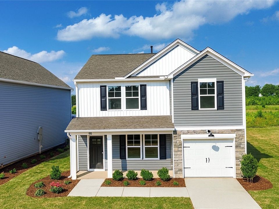 Trenton B6 Plan. Discover this exquisite 3-bedroom, 2.5-bath single-family home, designed with modern convenience and elegance in mind. Spanning 1686 square feet, its open floor plan seamlessly blends spaces for effortless living. The main level impresses with a spacious living room, home office, and powder room, all showcasing designer vinyl flooring. The kitchen delights with granite countertops and an upgraded Moen Brantford faucet, complete with stainless steel appliances including a stove, dishwasher, and microwave. Venture upstairs to find all bedrooms thoughtfully arranged for privacy. The luxurious primary suite is a true retreat, featuring a generous walk-in closet, dual vanity, walk-in shower, and a private water closet. An expansive laundry room enhances convenience on the second floor. Step outside to enjoy the covered back patio, perfect for gatherings or peaceful mornings, complemented by a fully operational irrigation system. Energy efficiency is prioritized with a tankless gas water heater, rigorous HERS energy testing, and a third-party rating. Community amenities elevate this property with a newly built large private neighborhood pool, a pavilion with two fireplaces with plentiful seating, and scenic walking paths. This home promises both comfort and a vibrant lifestyle. *PLEASE NOTE that this home is currently under construction. Pictures are of a Trenton Floor plan on a different lot. Pictures will be updated upon completion** This home is located in the Champions Village at Cherry Hill Subdivision. **PRICES SUBJECT TO CHANGE WITHOUT NOTICE**