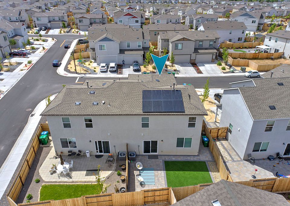 This wonderful 'duet' townhome offers high ceilings, excellent natural light, and mountain views! Enjoy 4-bedrooms, 2.5-baths, all appliances included, window coverings, a low maintenance and very functional back yard and legit air conditioning! Owner pays for the HOA dues, and for Solar Panels that will reduce buyer's energy bills!! Built to modern insulation standards, this newer, energy efficient home features LED lights, a tankless water heater, high ceilings, lots of natural light, great views and a fabulous, finished back yard. Situated with an easy commute to Reno or Susanville, you can get to 395 and I80 and old Virginia easily! Convenient to UNR, TMCC, multiple grocery stores, banks, eateries, Starbucks, the post office, gas stations, golf, lakes, hiking trails, the animal sanctuary, a community center, dog park, splash park and a huge regional park with great amenities and sports fields. This is a small and friendly neighborhood built by DR Horton.
