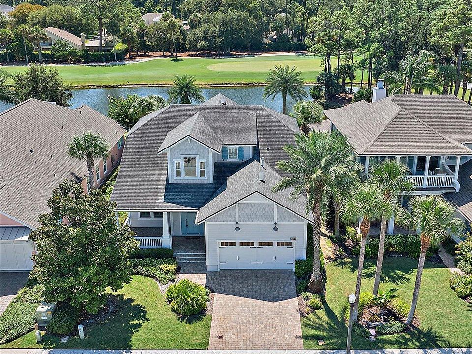 Welcome to your dream home in this exclusive updated & refreshed pool home nestled in prestigious Atlantic beach Country Club. This home offers sweeping water to golf views, blending resort-style living w/everyday comfort. It is located minutes from the Atlantic Ocean, AB town center, A rated schools & parks. Charming exterior with front porch, very open concept w/high ceilings, 2 story foyer, wide plank natural tone wood throughout 1st floor ( just refinished ) , custom designer lighting & new fans, custom window treatments, (roman shades and plantation shutters), new glass door off family that fully opens to huge covered lanai with summer kitchen, freshly painted interior, including all cabinets and the island, re-surfaced pool and new tile surround. . Detail wood trim on many walls and some shelving,. Office with custom shelves, powder room, wine cooler laundry with stackable W & D and custom cabinets, spacious kitchen with large island, pantry, dining area, & family room .. with FP and TV wall with gorgeous linear gas fireplace & shelving ( all overlooking pool and water ) 1st floor primary with luxurious bath, oversized shower, soaking tub and large custom walk-in Closet. 2nd floor has a cozy loft & 3 bedrooms ,2 baths. ( 1 is ensuite ) . This home shows like new!