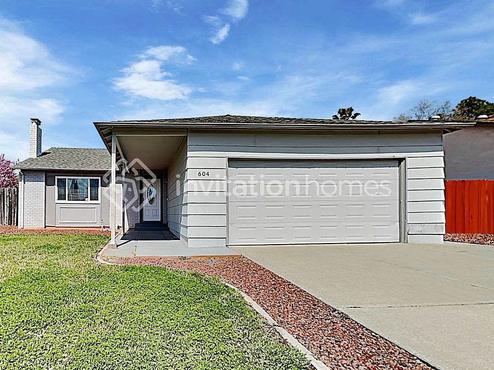 Home Features and Amenities: Fenced Yard, Garage, Granite Countertops, Long Lease Terms, Luxury Vinyl Plank, Open Floorplan, Patio, Pet Friendly, Primary Bedroom on Main, Single Story House, Smart Home, Tile, W/D Hookups, and professionally managed by Invitation Homes.