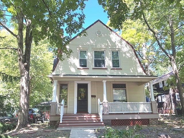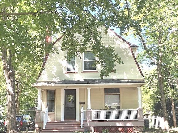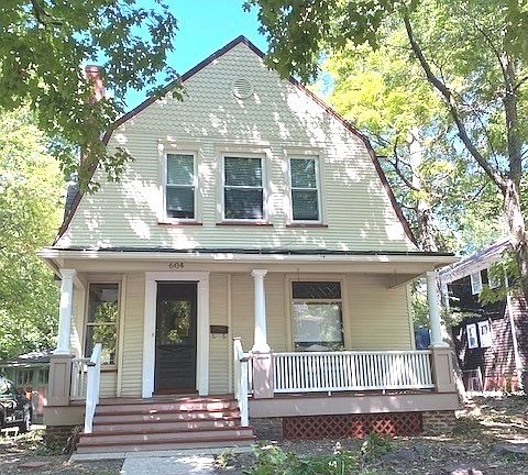 Turn of the century with the revival of Dutch colonial design at its finest! Fantastic oak wood craftsmanship throughout the home! Located on a tree-lined street giving the feel of "old world charm". Blocks from this home, to the West, is the East side of U of I's campus. The charming architecture of this 1897 built Dutch Colonial makes it a very unique structure and one to appreciate. The covered front porch offers a great space to relax on a Summer afternoon or take in a sunny autumn day. This porch was completely redone with all new wood and columns 5 years ago. Beautiful solid wood door, original, welcomes you into the home with oak floors and gorgeous woodwork showcased in the staircase and the fireplace mantle and hearth with unique carvings, as you enter the home. Solid oak built-in bookcases flank each side of the original glaze tiled fireplace. To your right is the large living room with two large windows that face South and East bringing in plenty of natural light. Large classic oak functioning pocket doors separate the living and dining rooms. The dining room is large and also hosts a very large window facing to the East and the beautiful original copper light fixture, matching the same one that is displayed in the living room. In the corner of this room is a nicely redone half bath, complete remodel in Sept. 2025 with new tiling, vanity and toilet, but keeping the original light fixture. Walking through is the kitchen which has a window facing West over the sink that draws light into that space. To the right, leads to the rear yard or to your left to the entryway hallway with an expansive closet under the staircase for great storage. All windows on the main level are the original windows. Access to the full basement is just off the kitchen. Basement offers a large amount of storage and the washer and dryer are located in this space, along with all the mechanicals, 100 amp breaker electrical box, and sump pump. Several rooms and spaces in the home have been recently painted, including the ceiling in the two story staircase. Some wallpaper remains and mimics grass paper which gives a nice texture to the walls. Walking up the solid oak staircase, there is a large window facing to the West with a beautiful stained glass window with a lightly etched geometric design. Hanging in this space is the original chandelier that lights this staircase leading to the second floor where the three bedrooms and a large full bath reside. All oak floors on second level of home, as well, with the exception of the tiled bathroom. There is plenty of closet space in each room, plus a large hallway closet. The largest bedroom to the right of the top of the staircase has a unique alcove with a small closet and on the opposite side of the room is another set of closets. Note: third bedroom has had newer, but matching oak flooring installed. This room also has a very large walk-in closet. The large bathroom has been completely remodeled in two different phases with the most recent done in Sept. 2025. All the windows on the second floor are newer replacements. Backyard is a cozy space with a uniquely designed 1.5 car carriage house door design garage. Gravel driveway allows for up to 4 cars to park. Don't wait to see this beauty and charm in this historic architectural home!! They don't build them like they use to and this one is a gem!