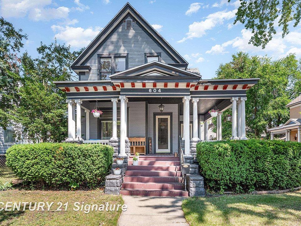 MOVE RIGHT IN ON W MIDLAND STREET! Built in 1910, this incredible 2-story home offers over 1600 square feet of character and charm with 4 bedrooms, 3 full baths, and a full basement! Upon arriving, an extra wide driveway and 1.5 car detached garage allow for ample parking. The main level features an updated kitchen and dining room with new vinyl flooring, Corian countertops, updated cabinets, and stainless steel appliances. Main-floor living is easy with a generously sized bedroom, currently used as an office, a 3-piece bathroom with walk-in shower, and 2 living spaces with gorgeous hardwood floors! 2 beautiful staircases take you to the upper level where 2 additional bedrooms, the primary bedroom with walk-in closets, and another full bathroom with relaxing soaker tub are located! The full basement has a 3rd full bathroom and offers an abundance of storage space with additional workshop and canning spaces! Recent updates to the home include a new roof in 2025, furnace in 2019, updated plumbing in 2018 and updated electrical. A whimsical wrap around porch and fenced in yard make outdoor living a breeze! Great location! DON'T DELAY! Schedule your showing of 604 W Midland St TODAY!