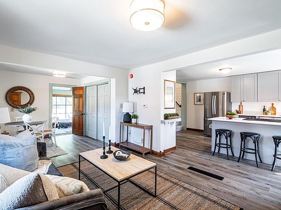 Classic barnCozy family roomVaulted ceilingsWood burning stoveNew flooringMature treesNearly an acre