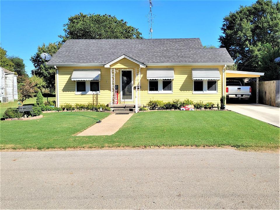 This cute home has a cottage type feel to it, like you're home as soon as you pull in the recently redone driveway. Inviting landscaping with a very lush lawn gives this home plenty of curb appeal. Vinyl flooring, vinyl windows, newer shingles, and freshly painted throughout this 2-bedroom 1-bath home. Modern updates but still has that charm. Plenty of space for parking under the attached and detached carports. The shop has added storage with lots of built-ins. This will make a good first home or a great place for downsizing. Ask about 100% financing options, call today! Lot size 55x139. MLS1924