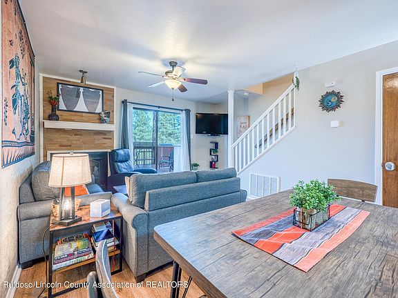 Charming 2-bedroom, 1.5-bath condo with golf course views--perfect for a mountain retreat, full-time living, or vacation rental. Enjoy a spacious deck in the cool pines with visits from deer & elk. Turnkey and move-in ready, all furniture and appliances stay! Updates include new A/C (2022), fridge (2024), and living room furniture (2025). Proven performance as a vacation rental for added income potential. Centrally located near golf, skiing, shopping, restaurants, casinos, Ruidoso Downs Racetrack, Spencer Theater, lakes, fishing, and local attractions like Pillow's and Jack's Backstage. A rare opportunity to own a cozy, convenient Ruidoso condo!