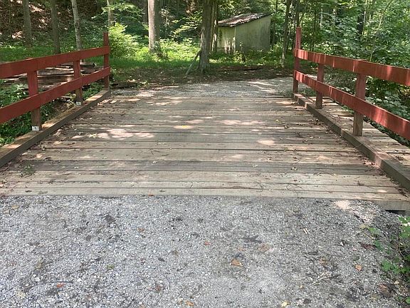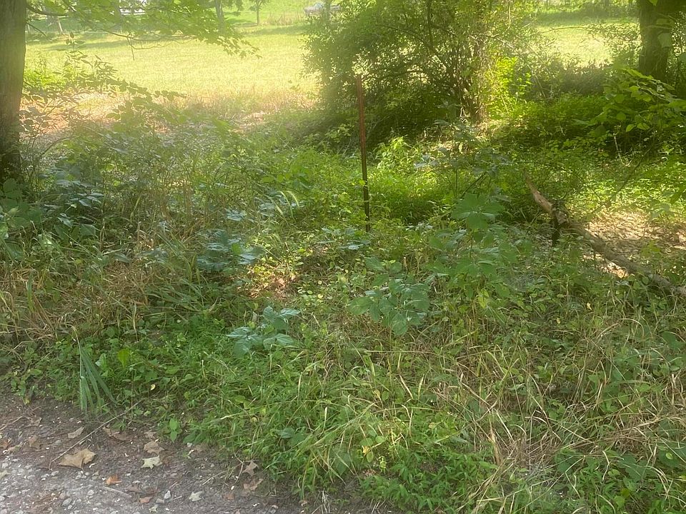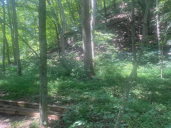 tranquil building spot,very private setting at the end of dead-end rd w/ various mature trees (hickory, elm, walnut, poplar wild cherry some oaks and pines). creek runs alonf front and side of land. older cabin(4br) that has no value and will need torn down to build your new cabin or home. It already has well and 1500 gal fiberglass septic tank that can be utilized in the future. or bring your camper to enjoy time away.