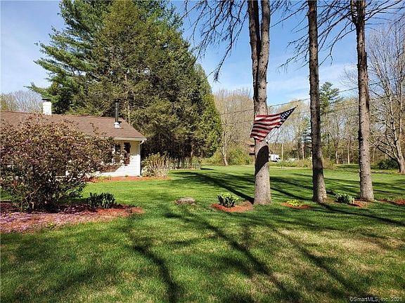 This property is located just right across the street from Nathan Hale Forest for extreme privacy. This single level Ranch home is meticulously maintained with a remodeled eat-in kitchen with granite counters, plenty of cabinets and a bay window. There are 3 entries to the house, from the front door, the side yard and the back door for ease of access. The flooring throughout the house, bright replacement windows, bookshelves in one of the bedroom, the wood stove in the living room and the first floor extra large laundry room with wash tub sink put all the extra accents to the interior of the property for quality living. There are recessed lighting and cedar lined bedroom closets and a beautiful paverstone walkway to the front door. Now...the entire property is surrounded by a stunning, flat, luscious yard. Many flowers and shrubs, trees and evergreens accent it. The yard is mostly fenced and encloses an in-ground pool that has a beautiful patio. There is a open barn 2 car garage that can be used for storing your outdoor equipment. In addition, there is an heated 40x20 building with a garage door and a side door that has its own electrical service that can be used as a wood shop, car restoration area and any hobbies that you might have. This is heated by a wood stove. It is just a beautiful well maintained home with pride of upkeep that really shows, with an 12 year old central air oil hot air system, many very recent improvements and ready to be your new home. There are two wells on the property, a drilled well that is currently being used and a dug well with a hand pump that is on reserve and can be used for watering. The septic system consists of an concrete tank, pumped annually, and a leaching field. If you are a nature enthusiast, there are walking paths and trails in the Nathan Hale Forest within a short walking distance from the property.