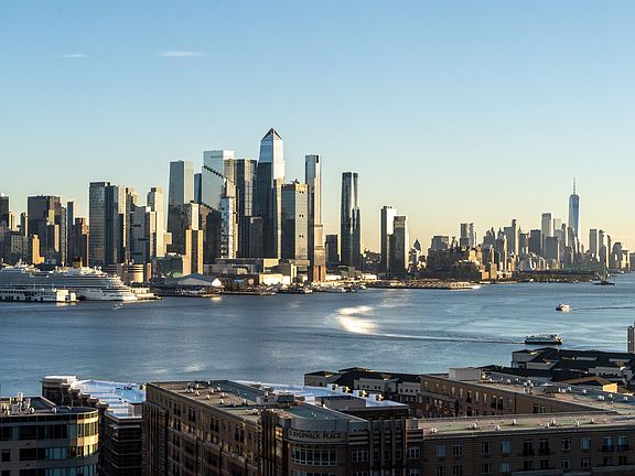 Enjoy the sweeping city views from this 2 bedroom 2 bath CORNER unit at Riviera Towers! Over 1400 square feet, plenty of room to create the home of your dreams in West New York. The open floor plan living and dining space has massive windows providing incredible western light to the whole unit, and a door with access to the expansive private covered terrace with panoramic views of the Hudson River and Manhattan Skyline. The primary bedroom has an en suite bath, spacious walk in closet and separate double wide closet as well. The second bedroom is perfect for an office or guest bedroom, also has a double closet and gorgeous views. All this is part of an incredible community at Riviera Towers, where you will enjoy access to the rooftop pool and other amenities including a doorman, security, an elevator and a wash/dry room on every floor. Garage parking, gym membership and storage space are also available for an additional fee. Enjoy an easy commute to Manhattan, door to door to Port Authority in under 30 minutes!