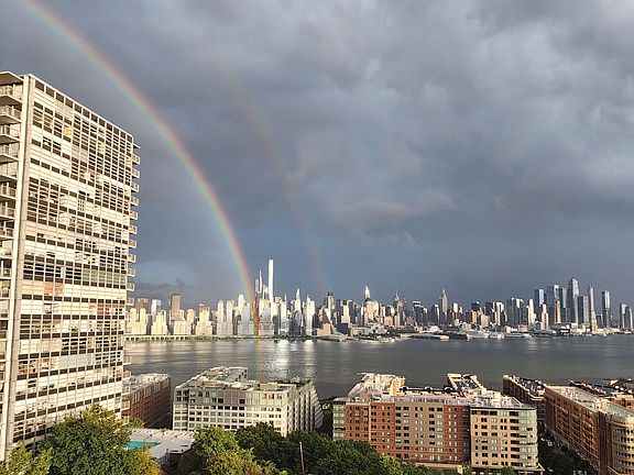 STUNNING VISTAS FROM EVERY WINDOW OF THIS ALLURING HOME AWAIT YOUR ARRIVAL!!! Practically perfect in every way, this rare mid-height SE facing EXECUTIVE ONE BEDROOM w/ ever-changing picture-perfect wallpaper featuring the BEST of the MANHATTAN SKYLINE awaits one lucky new owner!!! 11F is the ideal city home or pied-a-terre. Entertain your friends or keep the view all to yourself! But a few of its many offerings include an updated chef's kitchen w/ granite counters and new appliances, a private dining area, vast living room, and a spacious bedroom with a lighted walk-in wardrobe. This lovely jewel is capped off with a luxurious fully granite clad bath and 200 SQUARE FEET of private outdoor space to enjoy a morning or evening respite and drink in the CITYSCAPE. All located in a full-service building with 24 door staff, on-site pool, on-site gym, on-site convenience store and on-site parking for guests and residents. The recreation deck offers an endless array of seating and BBQ grills for resident use! The HOA this beauty includes gas, electric, water, hw, gas, sewer, and property taxes. Minutes to NYC via both private and public transportation, come and make this your home today!