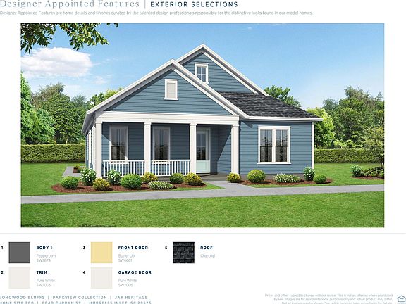 The Jay plan offers a spacious covered front porch that overlooks the greenway park. The well-designed chef's kitchen is equipped with breakfast bar, plenty of counter space, soft close cabinets & drawers, stainless steel natural gas cooktop and wall oven, quartz countertops, tile backsplash and sizable pantry. Adjacent to the kitchen is a casual dining space with ample natural light. The gorgeous primary bedroom suite features two generously sized walk-in closets, spa-like primary bath with a luxe large tiled shower, and private water closet. The secondary bedrooms feature generous closet storage with access to a shared hall bath. Additional highlights include a side covered porch for outdoor living, Revwood and tile flooring throughout, dramatic double tray ceilings in the primary suite & great room and an attached GOLF CART GARAGE! Longwood Bluffs at Prince Creek offers exceptional community amenities within walking distance including a TPC Golf Course, pools, tennis courts, nature trails, biking trails, playgrounds, and just 3 miles to Murrells Inlet Marshwalk and only 5 miles to the beach!