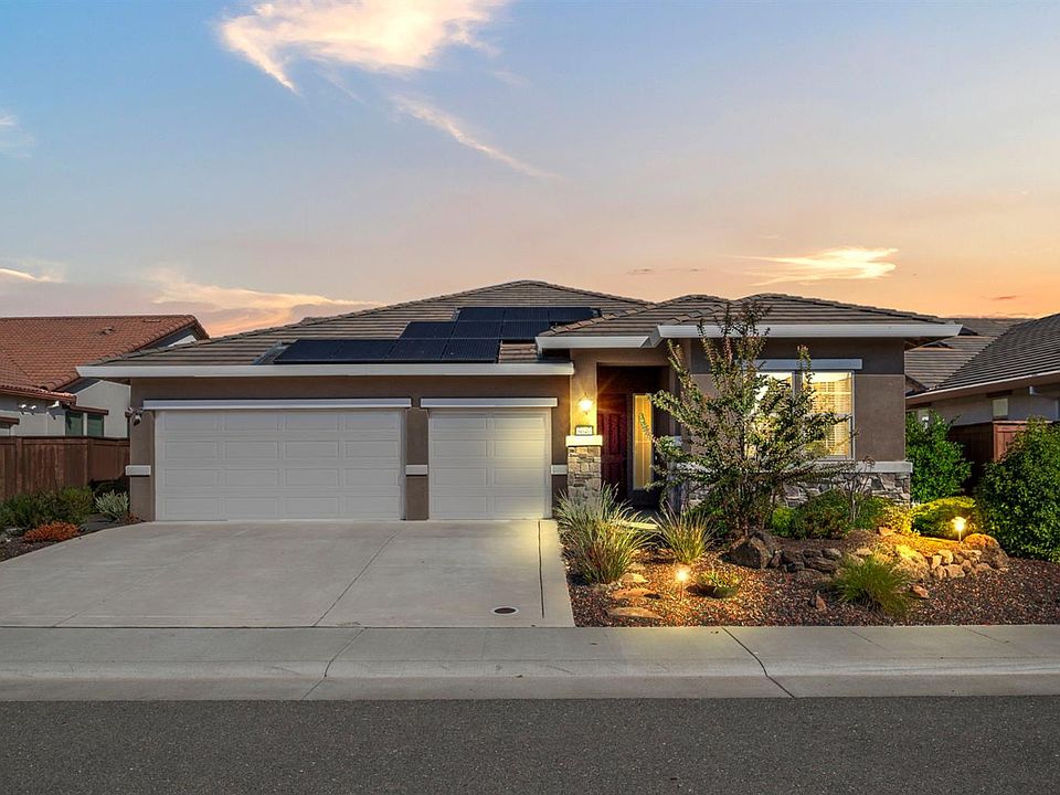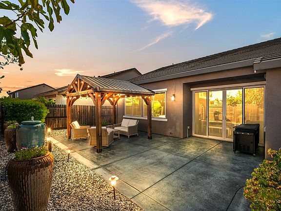 Better Than New!Where Style Meets Comfort! Pride of ownership truly shines in this stunning home featuring a highly desirable open-concept floor plan, perfect for entertaining and everyday living. Enjoy the modern elegance of upgraded gray tile flooring, custom window coverings, and a chef-inspired kitchen complete with stainless steel appliances, double ovens, and a spacious walk-in pantry. The luxurious primary suite offers a beautifully appointed bathroom and an expansive walk-in closet that will impress even the most discerning buyer. Step outside to your professionally landscaped oasis, complete with a wood pergola and a tranquil water feature, the perfect spot to relax and unwind. Located in a highly sought-after neighborhood, you'll love being just moments from parks, scenic walking trails, and the new shopping complex featuring Nugget Markets, Raley's, and more. With top-rated schools nearby and owned solar for energy savings, this home truly has it all.