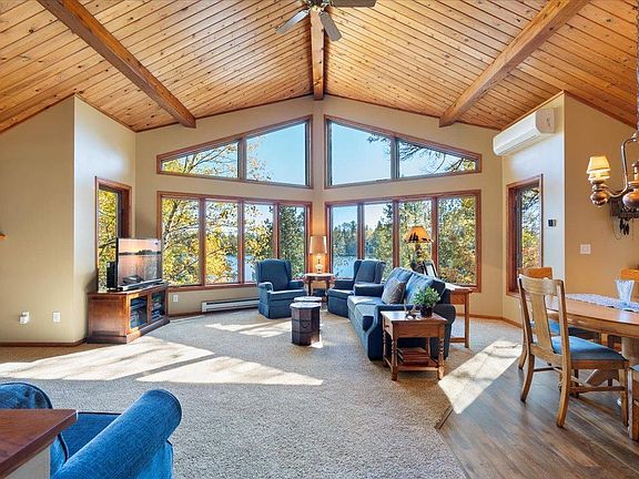 Set on 150 feet of private shoreline, this four-bedroom, two-bath turnkey cabin has been fully dialed in, nothing needed, just arrive and enjoy. The main living space opens to vaulted ceilings and panoramic lake views, creating a seamless indoor-outdoor connection you want in a lake home.