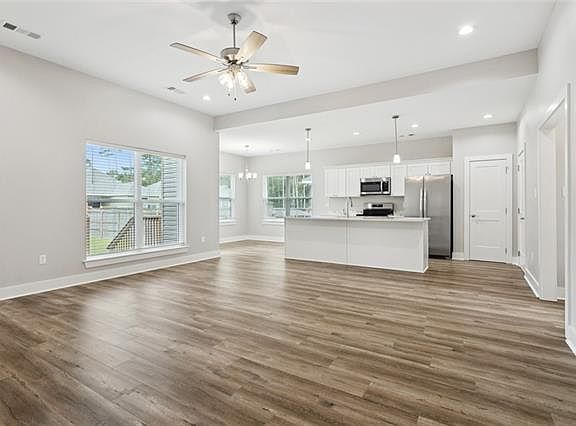 Incredible rental: New construction on a double lot. This beautifully finished 4 bedroom, 2 bath home offers almost 1600 sq ft of living, tall ceilings, a split floor plan, and stylish details throughout. Features include wood-look laminate flooring, white quartz countertops, white cabinetry, and a stainless steel refrigerator. The spacious primary suite boasts an oversized shower and walk-in closet. Comes complete with a new washer and dryer. Enjoy the covered back porch. Lawncare included in lease: no basketball goals, campers, or boats allowed. Also, no pets. Move-in ready!