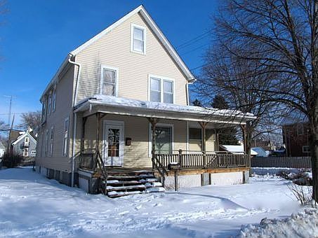 Ban Owned. Frame legal 2 unit building in average condition with front covered porch and detached 2 car garage. 1st floor unit is a 4 room 1 bedroom 1 bath, 2nd floor is a 5 room 2 bedroom 1 bath. Semi updated kitchens and baths, full unfinished basement. 2 electric meters one single HVAC unit. Activation of utilities and costs associated with inspections are a buyers responsibility