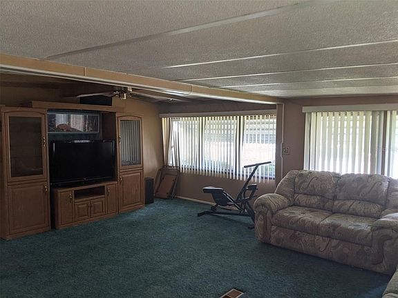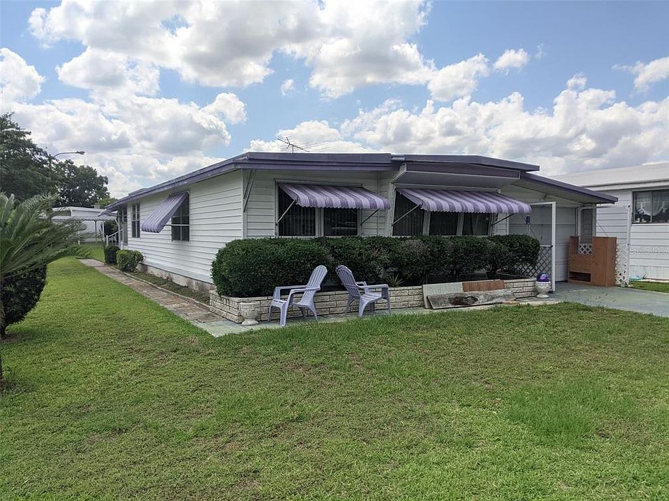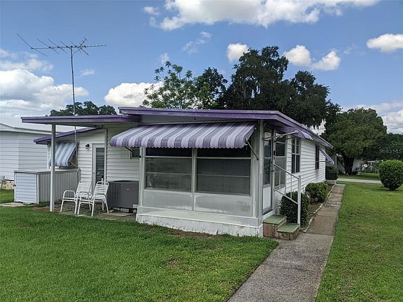YOUR WINTER HOME! Looking for that perfect winter getaway? You will love this cute 1-bedroom 1 bath home in this cozy mobile home park in the heart of Zephyrhills. Parking in your attached garage and stepping immediately into the home you notice the spacious living room directly overlooking the kitchen. Directly adjacent to the kitchen is the formal dining area equipped with built in storage and a large mirror; giving the space a larger appearance. Moving down the hall you will find a full bathroom with garden tub and shower combo and two bedrooms; The larger bedroom has a storage/craft/utility room immediately connected with an exterior exit. Outside you will notice a decent sized back yard for this community and horseshoe pits as well as shuffleboard courts in viewing distance. This is a 55+ home with low park fees of $25.00 a month. The clubhouse has many activities happening in this beautiful community. This won't last long schedule a showing today!