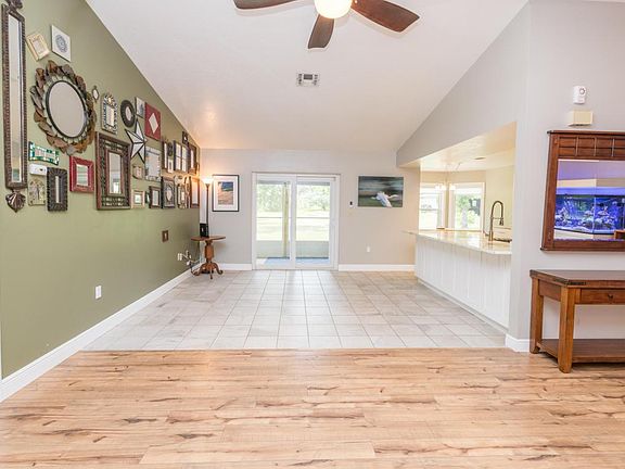 This newly Remodeled 3 bedroom, 2 bathroom home with 2 car garage and 14+ CAR DETACHED garage-shop on 3.9 acres fenced in. Newer insulated windows, sliders, garage entrance door, interior doors, laminate and tile floors, AC, septic, well pump - tank, water softener, Double front doors lead into living room which is open to Newer eat in kitchen with granite counter tops and appliances. Dining area features a salt water fish tank. Warranties on just about everything. The living room has vaulted ceilings and a real wood burning fireplace. The great room is open to kitchen, Florida room and dining. The master bedroom has a large walk in closet, shower, Guest bedrooms have a newly tiled bathroom. 40 x 100 detached Garage-Shop Awesome space, virtual tour