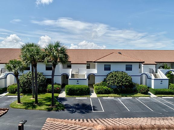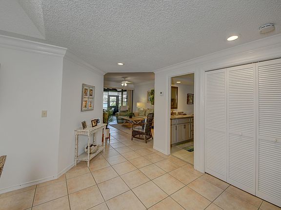 Relax and watch the tropical wildlife and beautiful sunsets from your enclosed patio overlooking the lake. This first floor 2 bedroom 2 bath turnkey fully furnished condo is move in ready. Remodeled in 2016, condo features a fully equipped kitchen with stainless steel appliances, granite countertops in kitchen and bathrooms, master bedroom with large walk in closet & ensuite, high end furnishings, crown molding, tile floors throughout. HVAC system replaced in 2020. Stacked washer & dryer in condo. 2 storage rooms outside of front door. Low HOA fee with community storage area for your kayak & paddleboards, access to the Intracoastal waterway. Community amenities include heated pool with Jacuzzi, tennis, basketball & pickleball courts. Close to shopping, restaurants, beach, doctors.