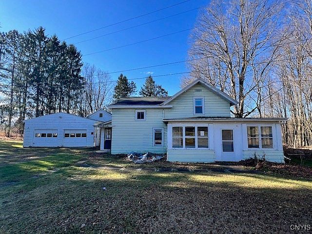 HUD HOME nestled on a quiet dead-end street. With some TLC and sweat equity, this property offers great potential and charm. The home features good sized rooms, including 4 bedrooms—one conveniently located on the first floor. A wood stove in the living room, and a first-floor laundry to add convenience to daily living. There is plenty of storage available in the back garage addition, as well as in the attached two-stall garage. Bonus: This property includes an additional 3.03-acre lot, providing plenty of space for outdoor enjoyment or future possibilities. Being sold as-is. Total Taxes include additional lot.